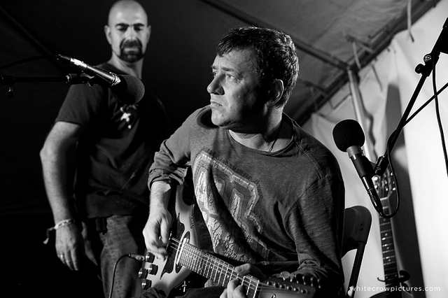 In the last 15 years, Leonid “Lenia” Fedorov, has established himself as one of the leading “indie” rock artists of Russia. Born and raised in St. Petersburg (former Leningrad), the city which in the 80s was to become the center of the national rock culture, Lenia started his musical activity in the late 70s, playing in amateur rock groups. In 1983 he founded a rock band of his own, which was given the name of Auktyon. From the very beginning Lenia assumed the role of the main composer and musical director of Auktyon; later he also took up leading vocals, thus becoming the band’s leader, responsible for the band’s musical image, who, however, always preferred to remain out of focus of public attention onstage. Auktyon’s breakthrough coincided with the times of “perestroika”, when the rock music in Russia got an unprecedented opportunity to be brought out to big audiences nationwide. In a short while, Auktyon gained the reputation of one of the most interesting Russian rock acts with the most unique and original sound and style. Apart from the band’s other advantages, it owed a great part of its success to Lenia’s extraordinary musical talent. By 1989 in Russia Auktyon was a hit big enough to receive an invitation to France, where they, along with two other Russian top rank acts, Zvuki Mu and Kino, performed as the representatives of the national rock culture in the West, and got a chance of releasing their first ever record in CD format. When the bright prospects of “perestroika” ended up in overall worsening of economic conditions in Russia, bands like Auktyon, who wanted to retain their independent artistic status, were forced to find new ways of remaining afloat. In Auktyon’s case in meant spending more time touring on the club and festival circuit in Europe, giving the total of 200 live performances in France, Germany and other countries. Through the good and hard times, Auktyon, under Lenia’s guidance, never stopped progressing musically, producing excellent albums, which were immediately receiving cult status in Russia, and looking for new ways in expressing their rich musical ideas. In 1992 they began artistic collaboration with a poet, folk singer, and painter Alexei “Khvost” Khvostenko, which resulted in two widely acclaimed studio albums, one live record and a single.