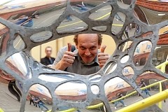 Можно сказать, что метод Константина Карташевского — это сознательное вынесение себя за скобки. Его скульптуры всегда стилистически разные, поскольку он не стремится к эгоистическому самовыражению. Это всегда философские рассуждения с элементами теории относительности. Автор говорит, что идеальный способ понять его работы — это ненадолго соединиться с произведением, раствориться в созерцании и на какие-то мгновения утратить чувство времени и силы тяжести.