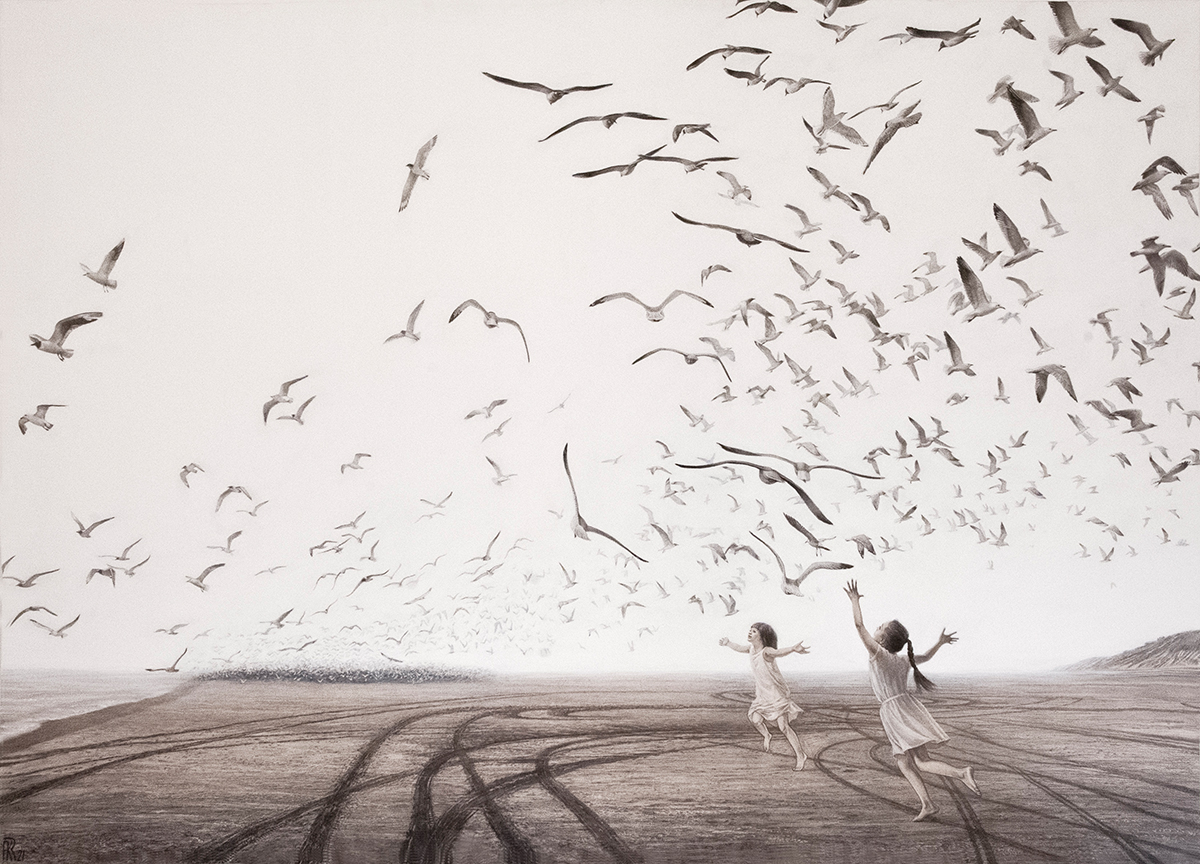Анастасия Кузнецова-Руф — художник с узнаваемой стилистикой и интонацией. Автор предпочитает работать с угольным карандашом, фон при этом оставляя белым, а цвет вводя лишь выборочно. Это позволяет выстраивать безупречную композицию, в которой нет ничего лишнего. Сюжеты Кузнецовой-Руф лишены контекста — ее герои остаются один на один с вечностью, олицетворением которой и становится белое пространство холста. Ведь приметы времени меняются, а экзистенция и острота переживаний происходящих событий — нет.